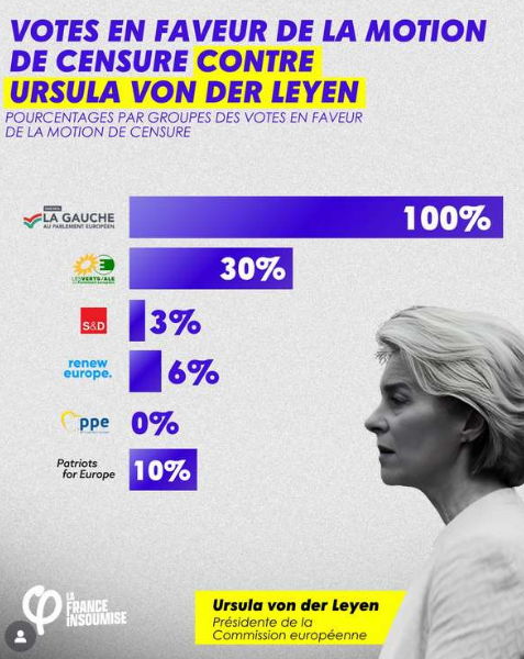 À l’heure des menaces sur notre souveraineté européenne, les sociaux-démocrates au Parlement Européen comme R. Glucksmann (ou Murielle Laurent – députée venue au Creusot soutenir D. Marti) votent contre la motion de censure de gauche vis-à-vis d’Ursula von der Leyen, avalisant de fait tous les reculs liés à sa gouvernance et sa soumission ouverte et assumée aux diktats états-uniens (5% du PIB dans l’achat d’armement US, promesse de milliards d’investissement européens aux USA, acceptation de l’explosion des droits de douanes sur nos productions, absence de rétorsion contre le gouvernement israélien, imposition au forceps de l’accord MERCOSUR, etc.)